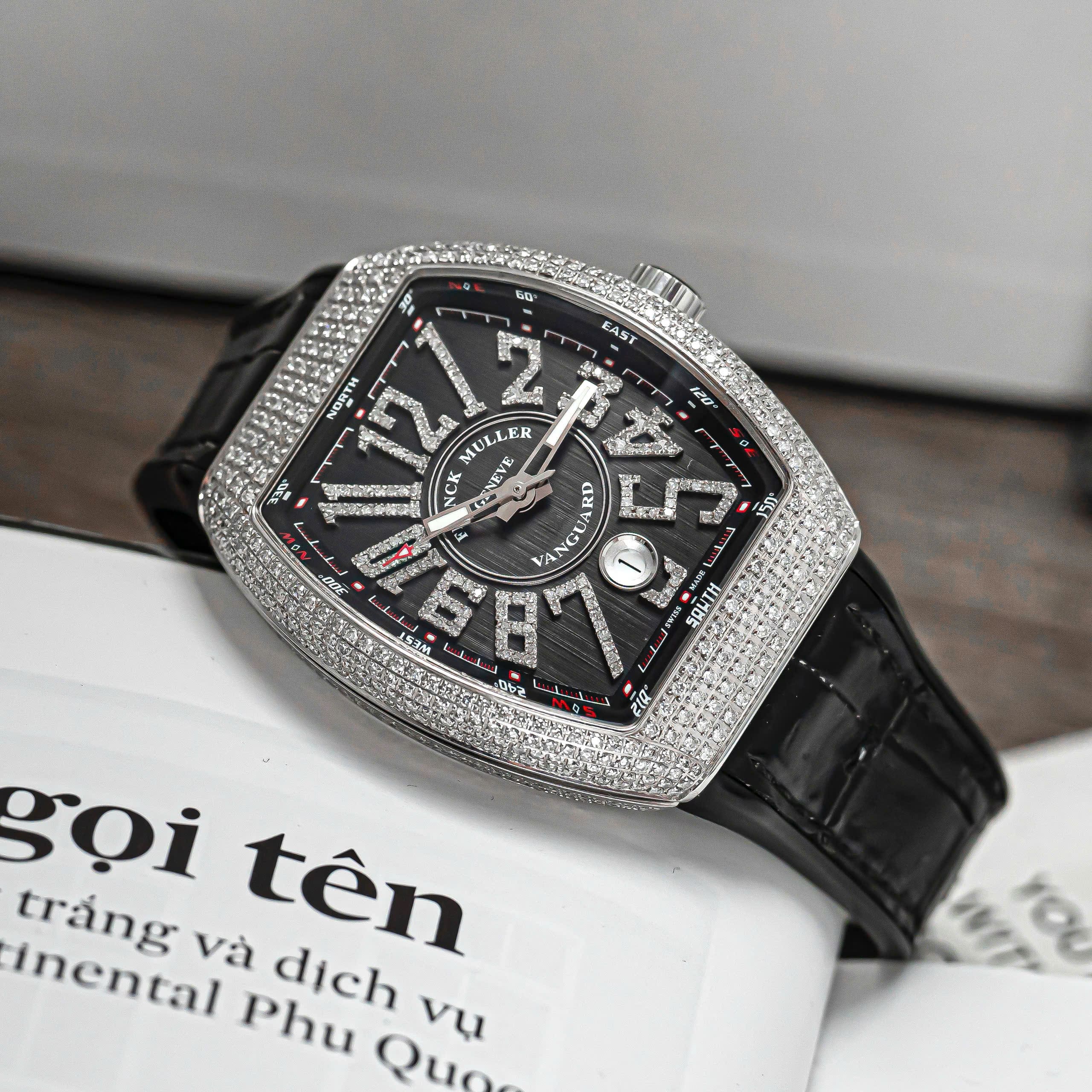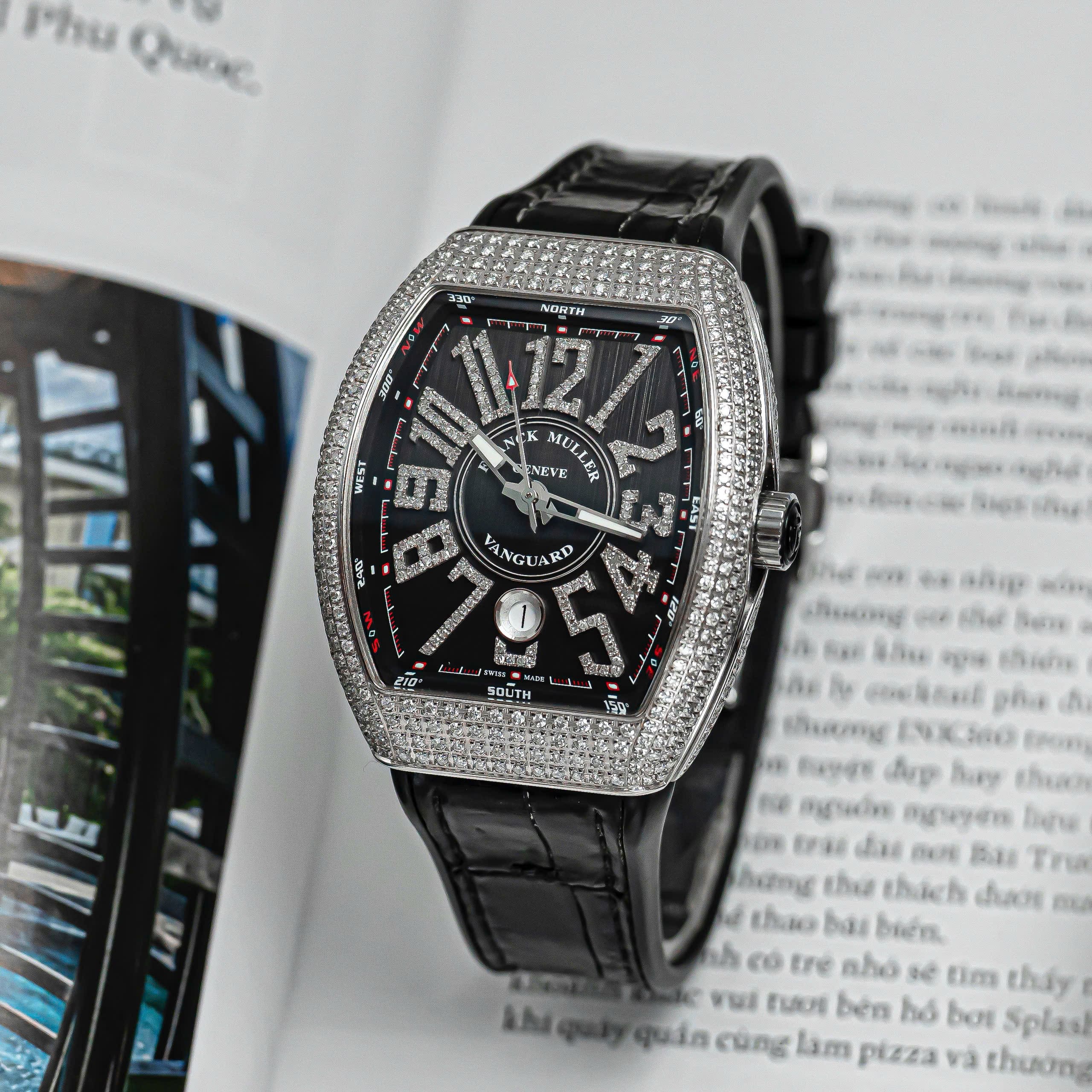 Franck Muller Vanguard V41 Custom Full Diamonds Black Dial