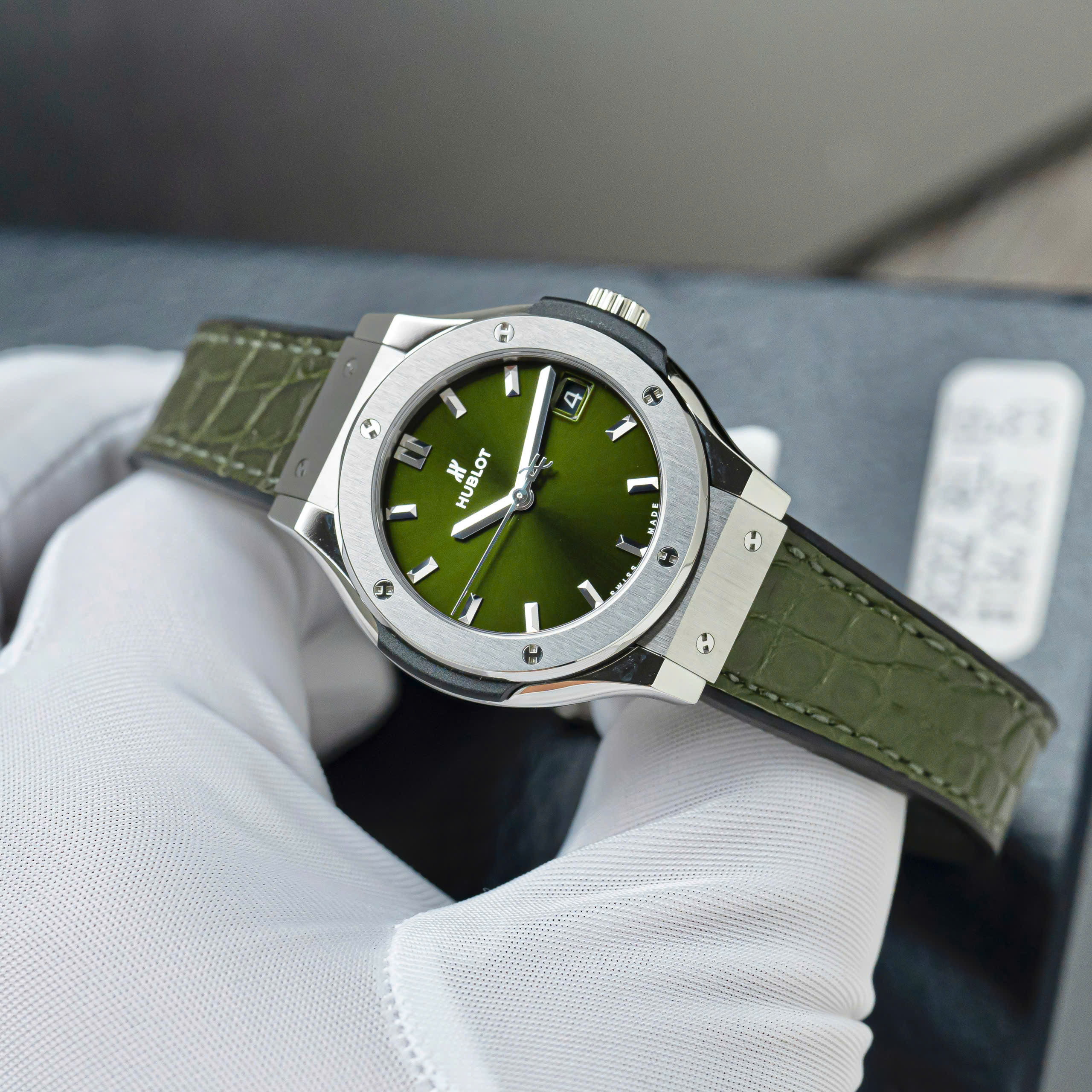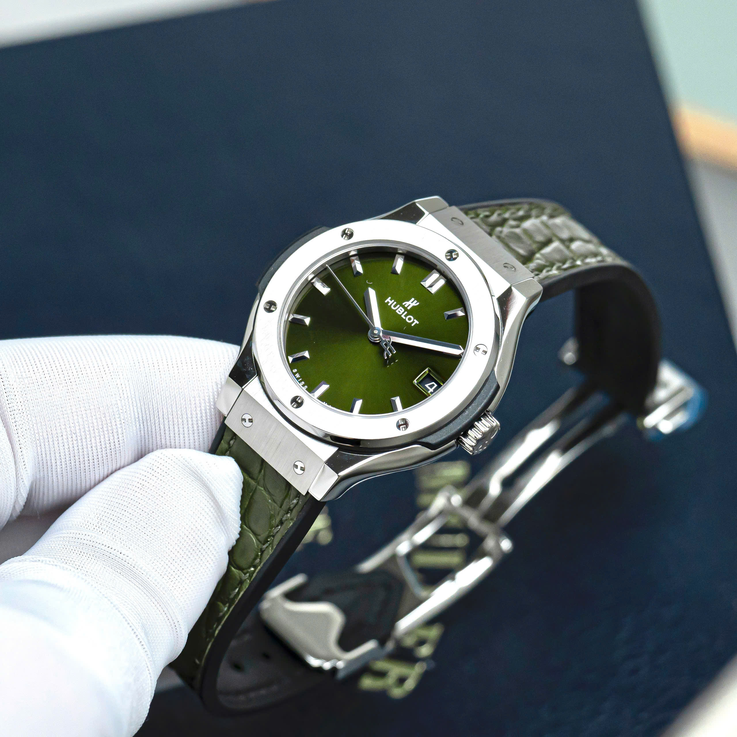 Hublot Classic Fusion 33mm Green Dial là lựa chọn lý tưởng cho những ai yêu thích sự tinh gọn, hiện đại và tính ứng dụng cao. Một chiếc đồng hồ Thụy Sĩ đúng chất Classic Fusion: nhẹ tay, dễ đeo và bền dáng theo thời gian.