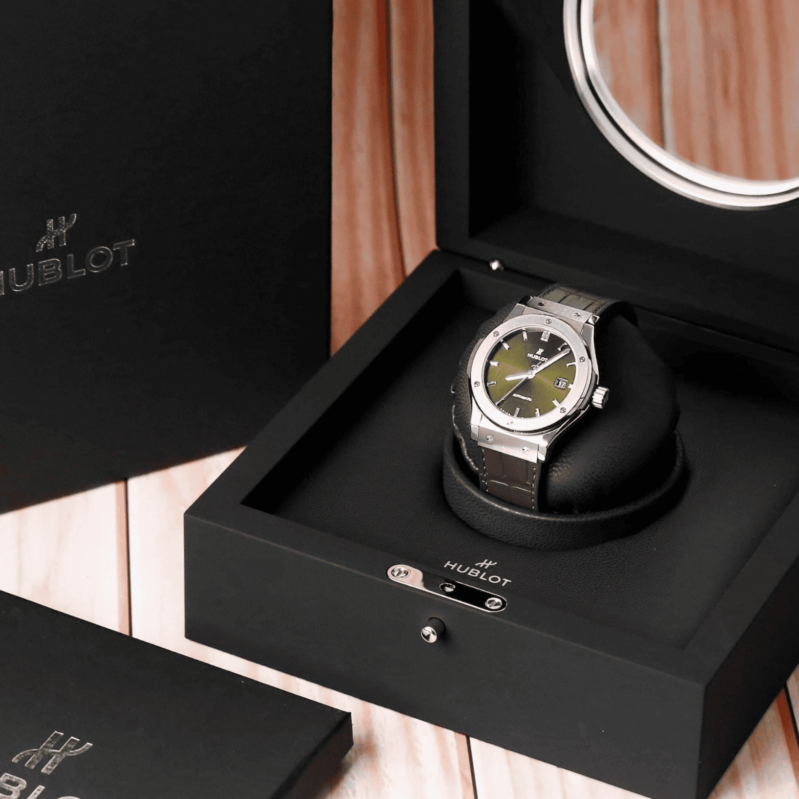 Hublot Classic Fusion Green Dial là lựa chọn hoàn hảo cho những ai muốn một chiếc đồng hồ hiện đại, sang trọng nhưng không quá phô trương.