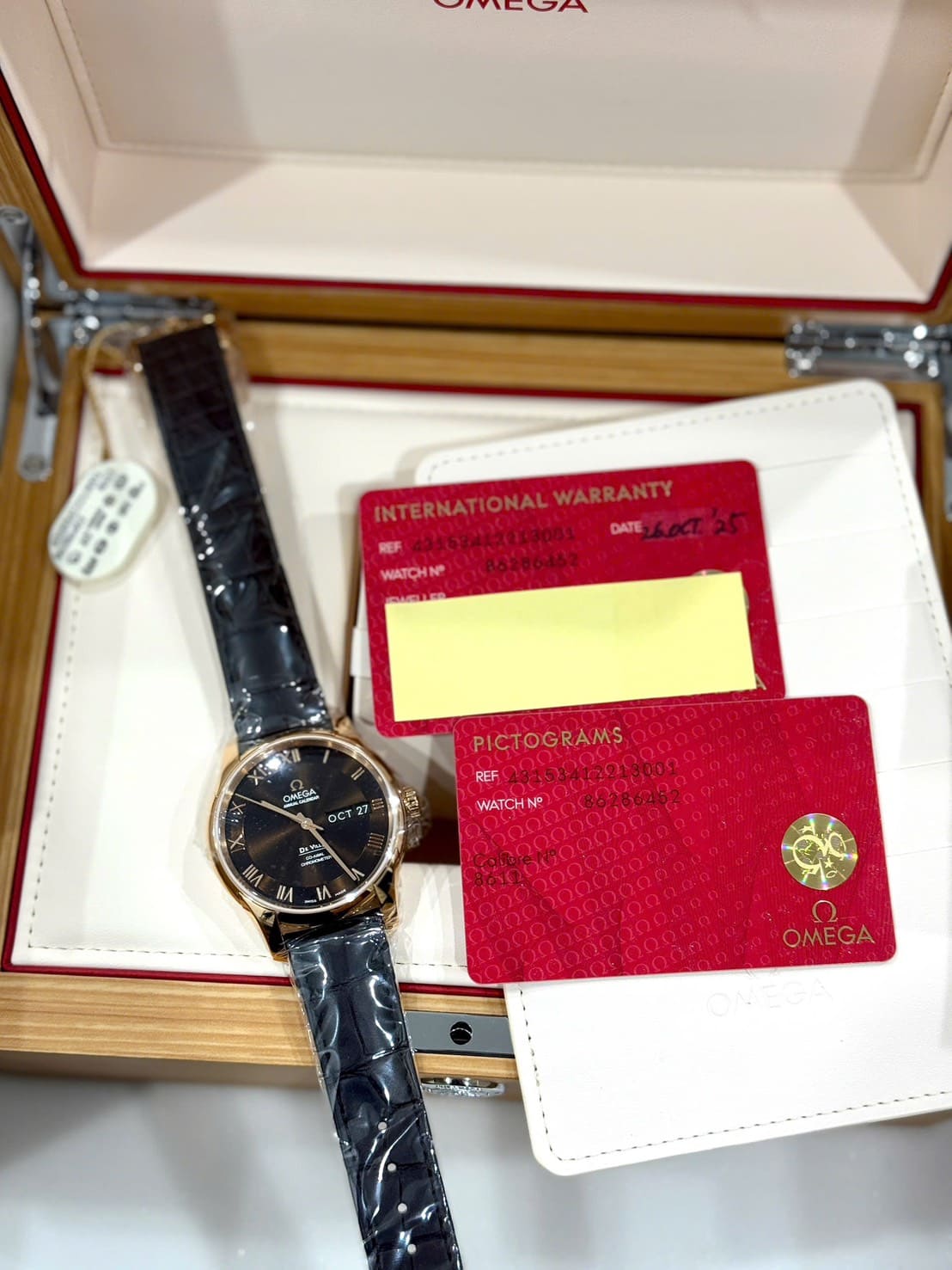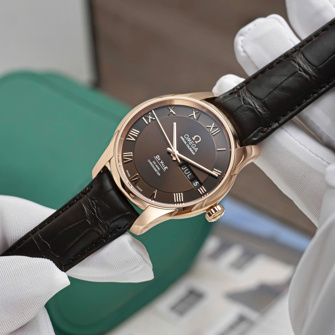 Hoàn thiện với dây da cá sấu nâu mềm mại và khóa gập vàng đỏ, chiếc De Ville này không chỉ là một công cụ đo thời gian mà còn là một tuyên ngôn phong cách – kết hợp hoàn hảo giữa kỹ thuật cơ khí đỉnh cao và vẻ đẹp vượt thời gian.