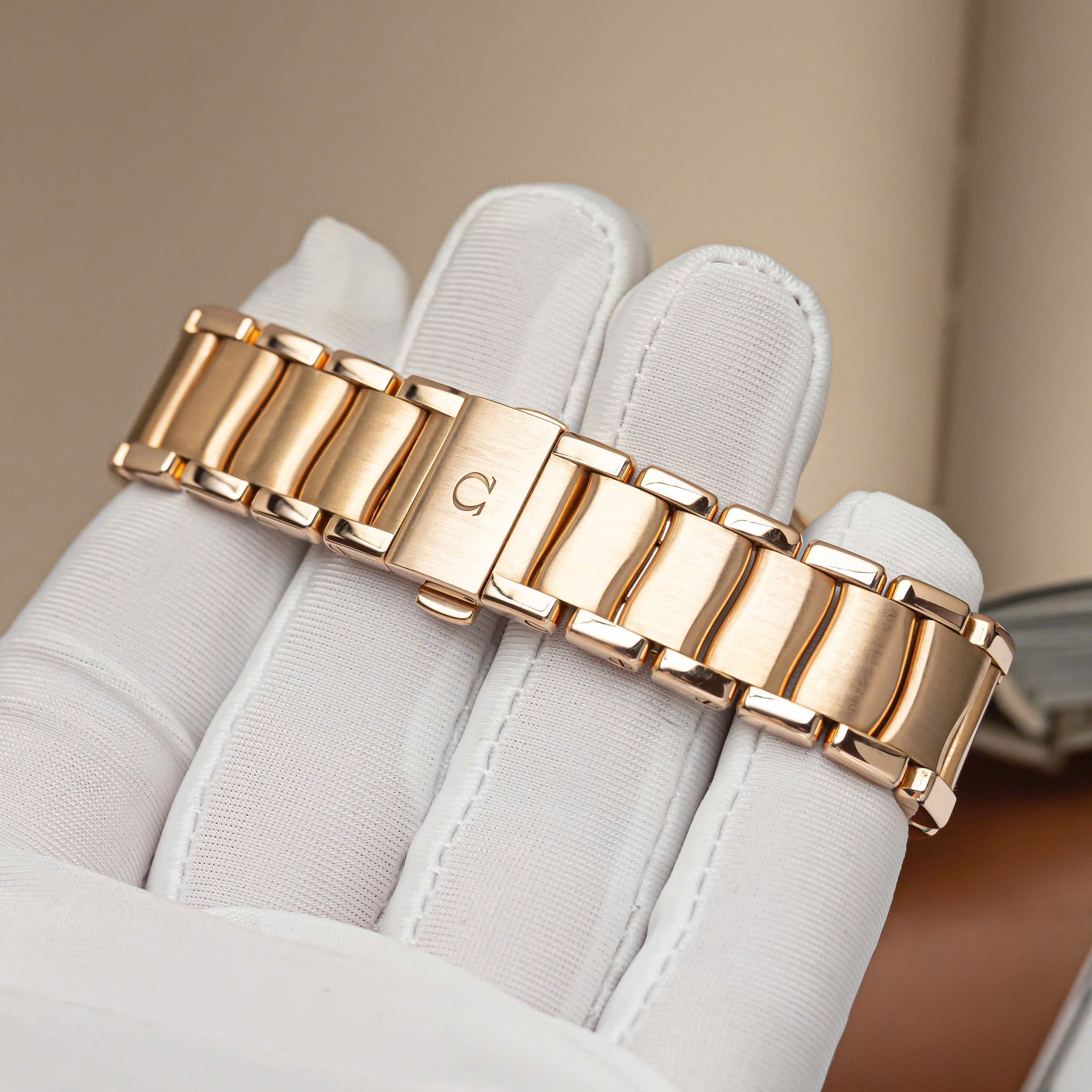 Bên trong là bộ máy Co-Axial Calibre 8521, biểu trưng cho kỹ nghệ cơ khí tinh vi của Omega, mang đến độ chính xác cao và khả năng dự trữ năng lượng lên tới 50 giờ. Từng chi tiết được hoàn thiện tỉ mỉ, từ họa tiết sóng xoáy trên mặt số đến đường nét mềm mại của vỏ, tất cả tạo nên một tuyệt phẩm vừa quyến rũ vừa mạnh mẽ — một cỗ máy thời gian dành riêng cho người phụ nữ hiện đại, tự tin và đẳng cấp.