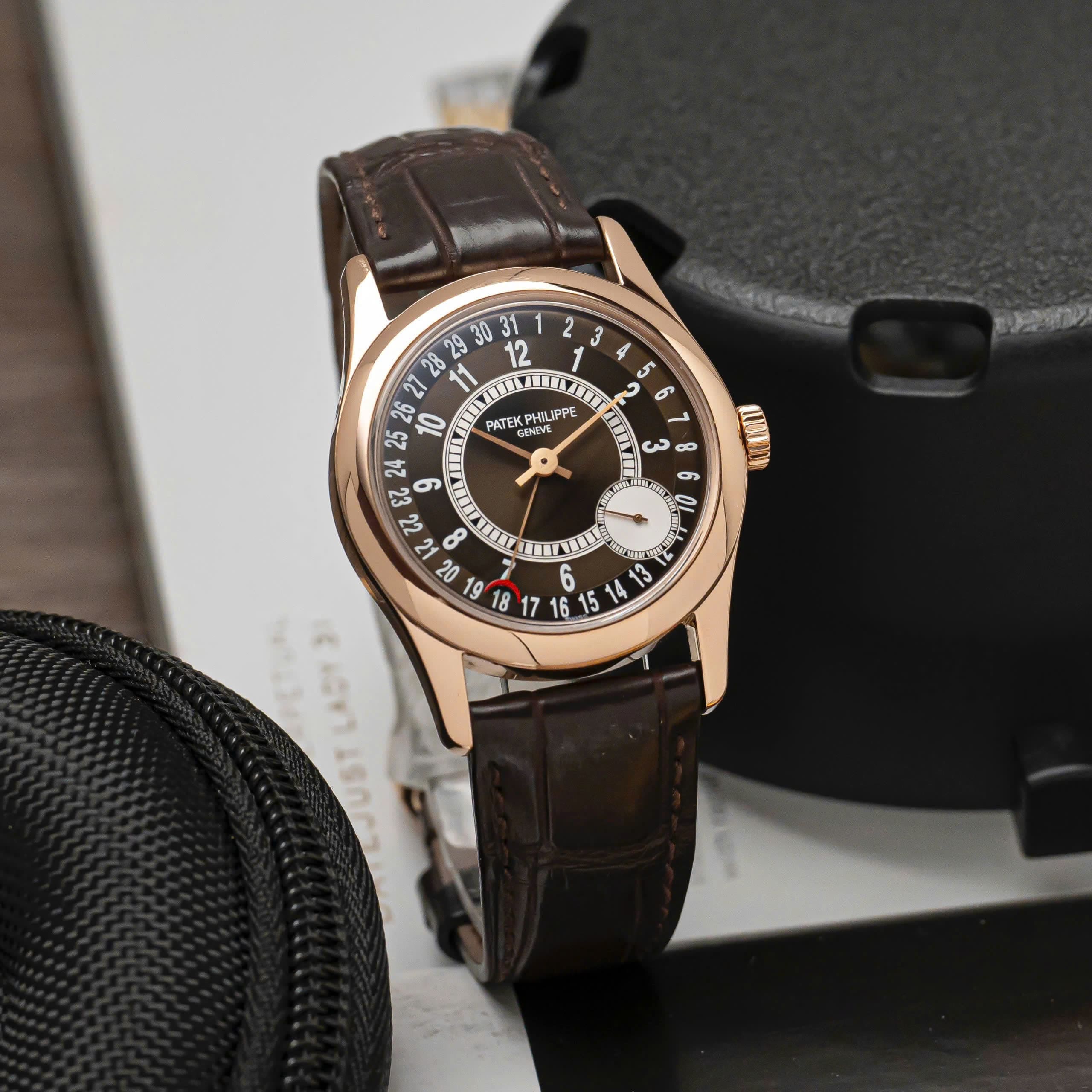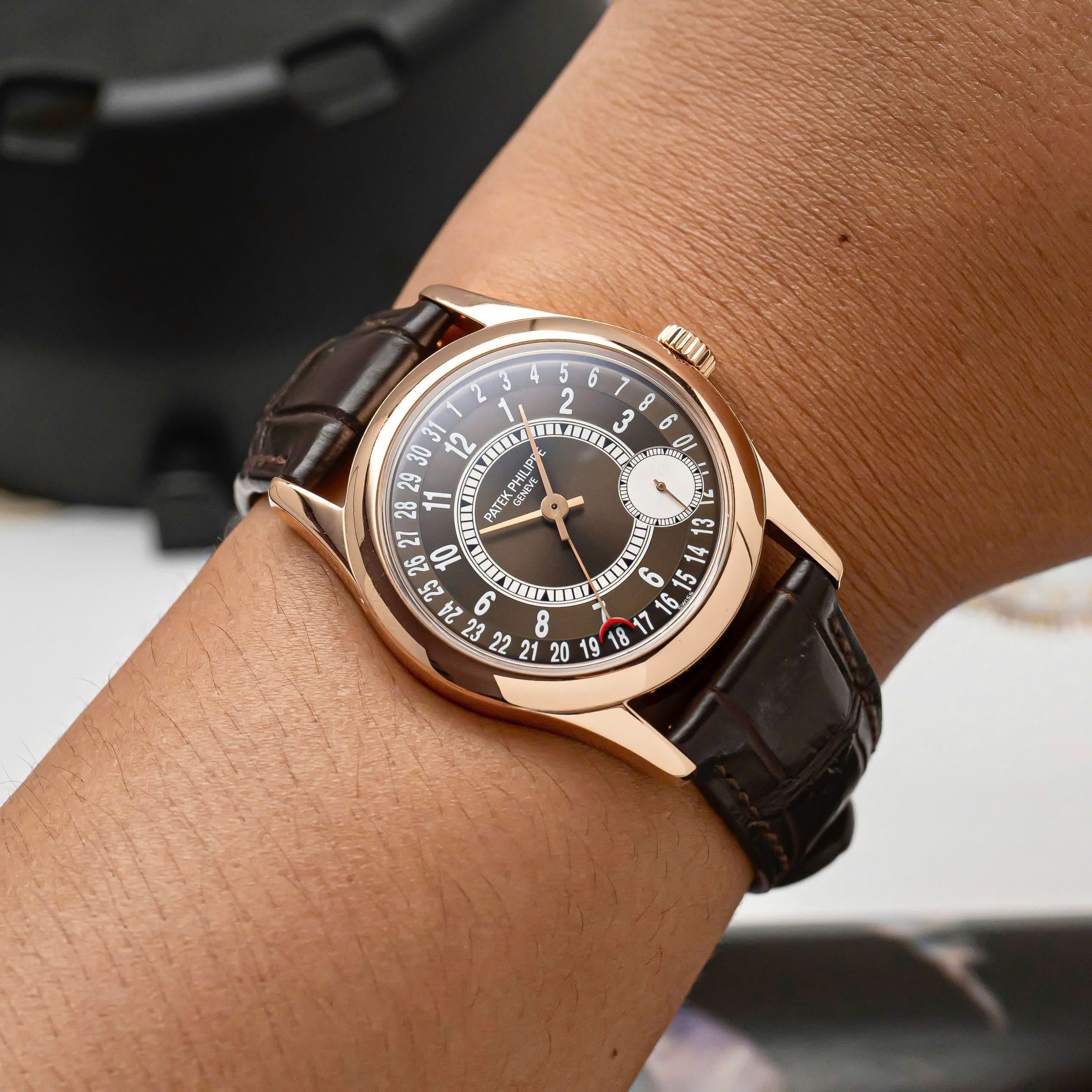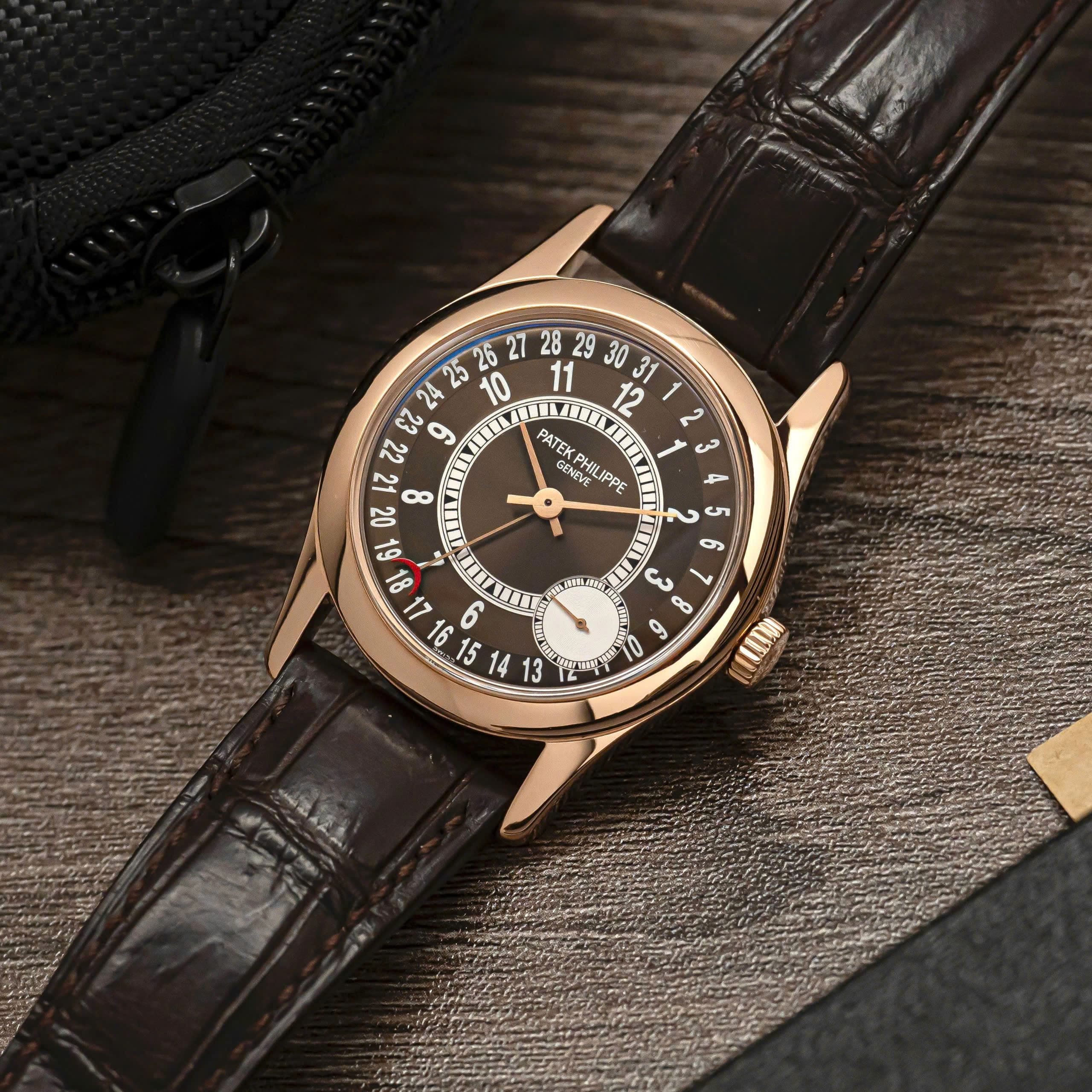 Dây da cá sấu nâu sẫm cùng khóa vàng hồng đồng điệu mang lại cảm giác cổ điển và sang trọng, khiến Calatrava 6000R không chỉ là một chiếc đồng hồ, mà còn là tuyên ngôn về phong cách và sự am hiểu nghệ thuật chế tác của người sở hữu.