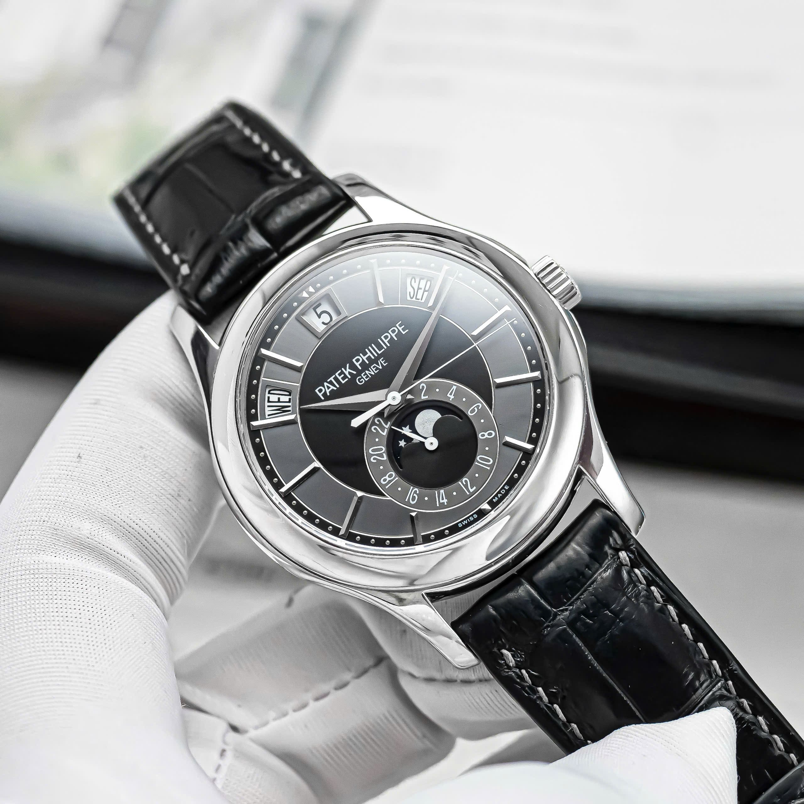 Patek Philippe Complications Annual Calendar Moon Phase 5205G-010 White Gold Black Dial 40mm