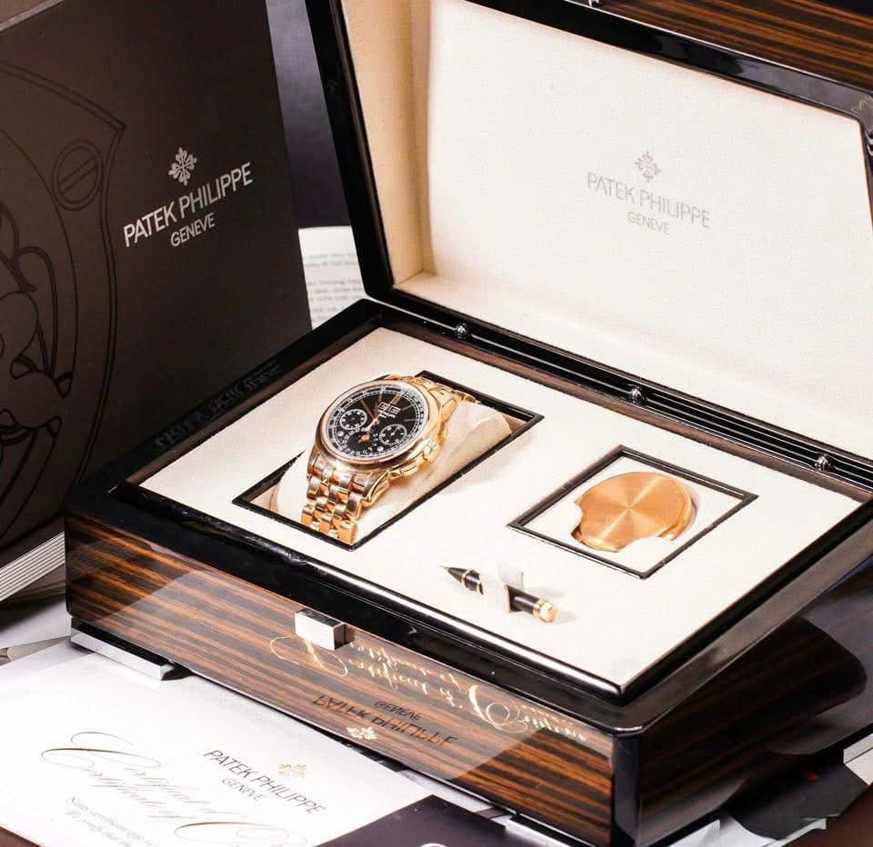 Patek Philippe 5270/1R-001 là một biểu tượng đỉnh cao trong dòng Grand Complications, thể hiện nghệ thuật chế tác cơ khí truyền thống kết hợp phong cách hiện đại mạnh mẽ. Chiếc đồng hồ sở hữu vỏ vàng hồng 18K đường kính 41mm, cùng mặt số đen bóng (ebony black sunburst) tạo chiều sâu thị giác cuốn hút. Các chi tiết chỉ báo lịch vạn niên và chronograph được bố trí cân đối, gợi nhắc đến những biểu tượng cổ điển huyền thoại của Patek.