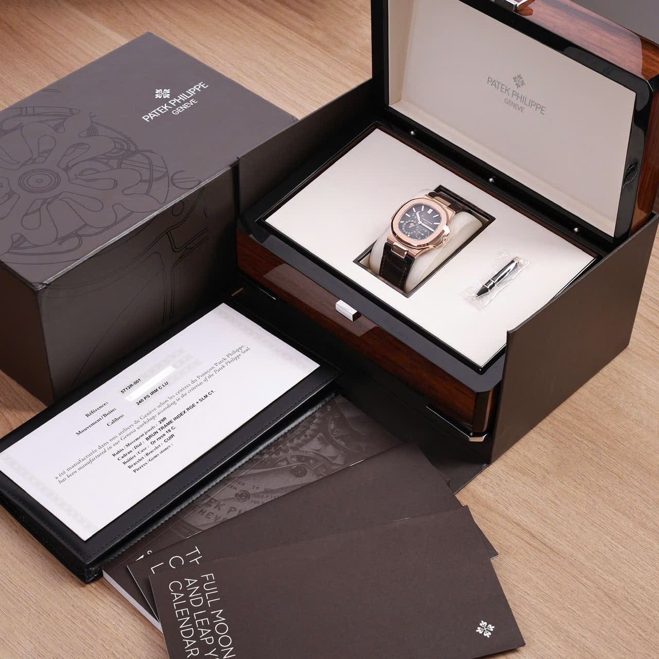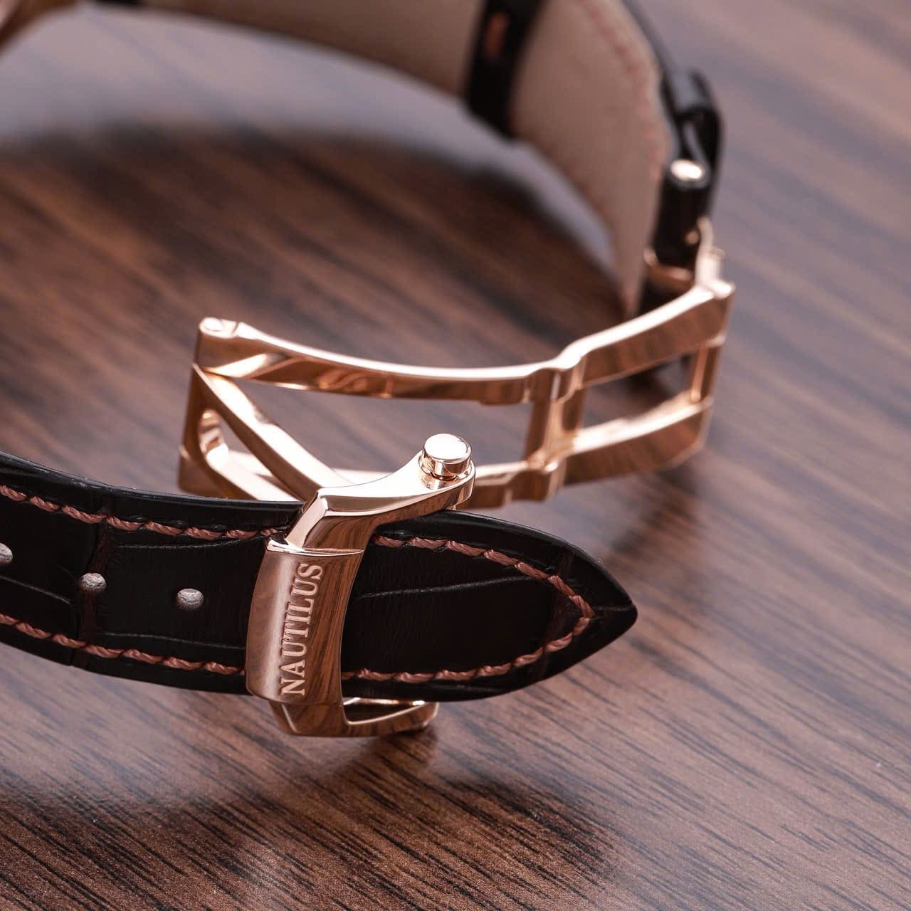 Chiếc Nautilus Ref. 5712R-001 là sự kết hợp hoàn hảo giữa tính thể thao thanh lịch và sự phức tạp cơ học bậc thầy của Patek Philippe. Bộ vỏ vàng hồng ấm áp, đường nét mềm mại nhưng dứt khoát, ôm trọn mặt số nâu khói huyền bí với bố cục bất đối xứng độc đáo – biểu tượng của phong cách tự do và tinh thần sáng tạo.