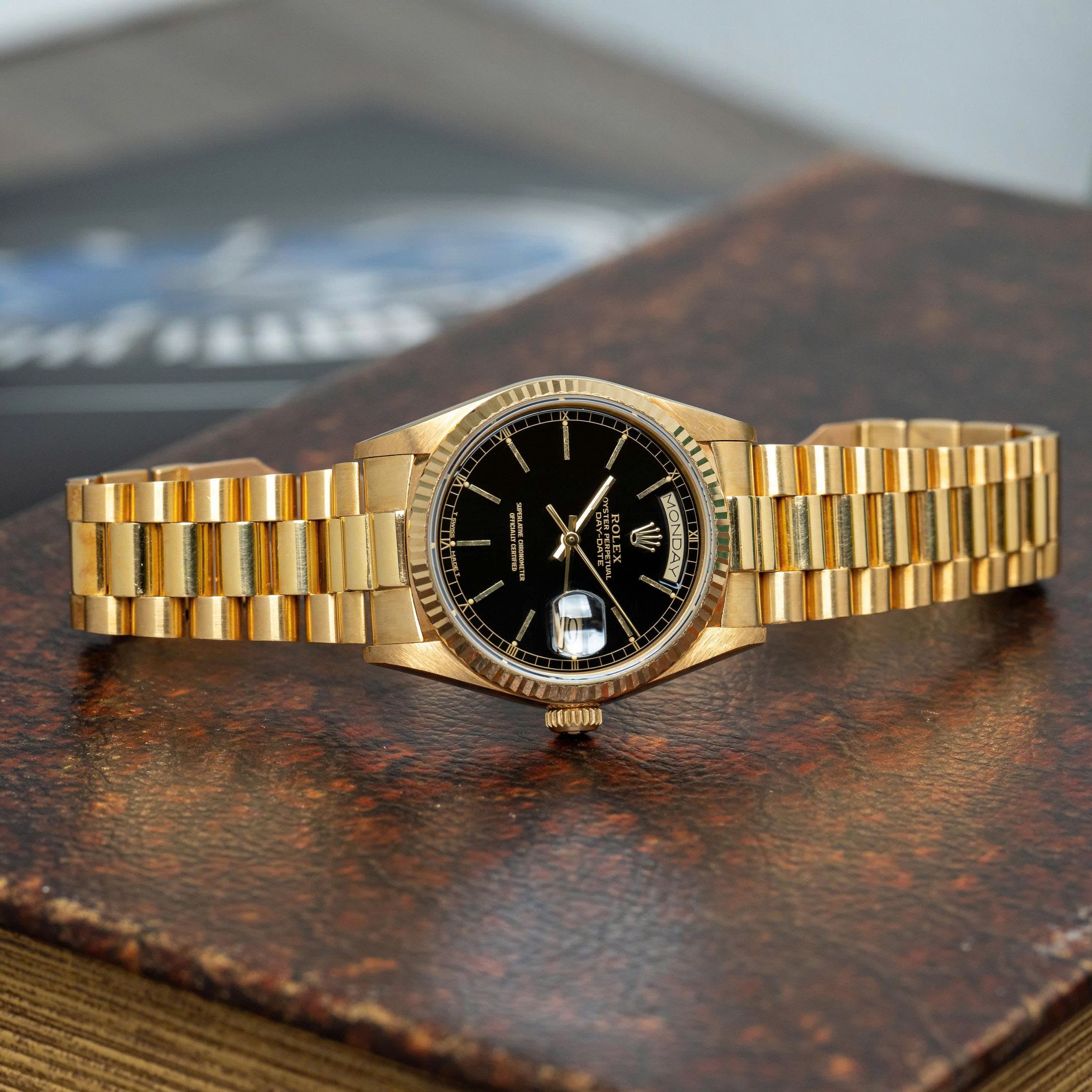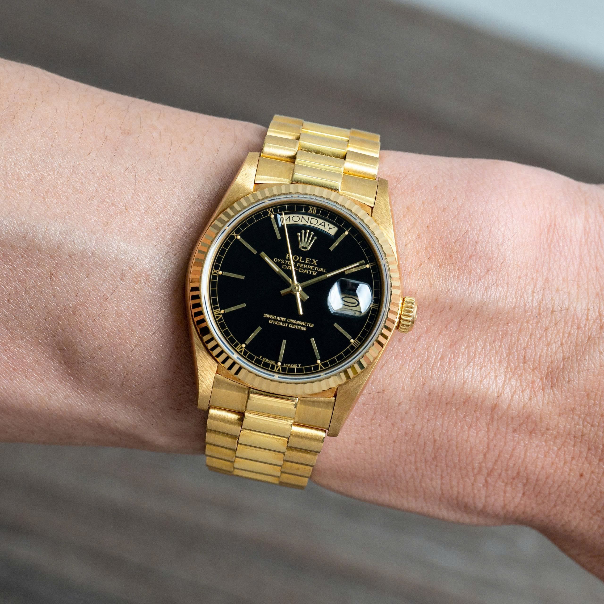 Ref. 18038 là một trong những reference cổ điển nổi bật của dòng Day-Date, được sản xuất trong giai đoạn vàng son của Rolex.