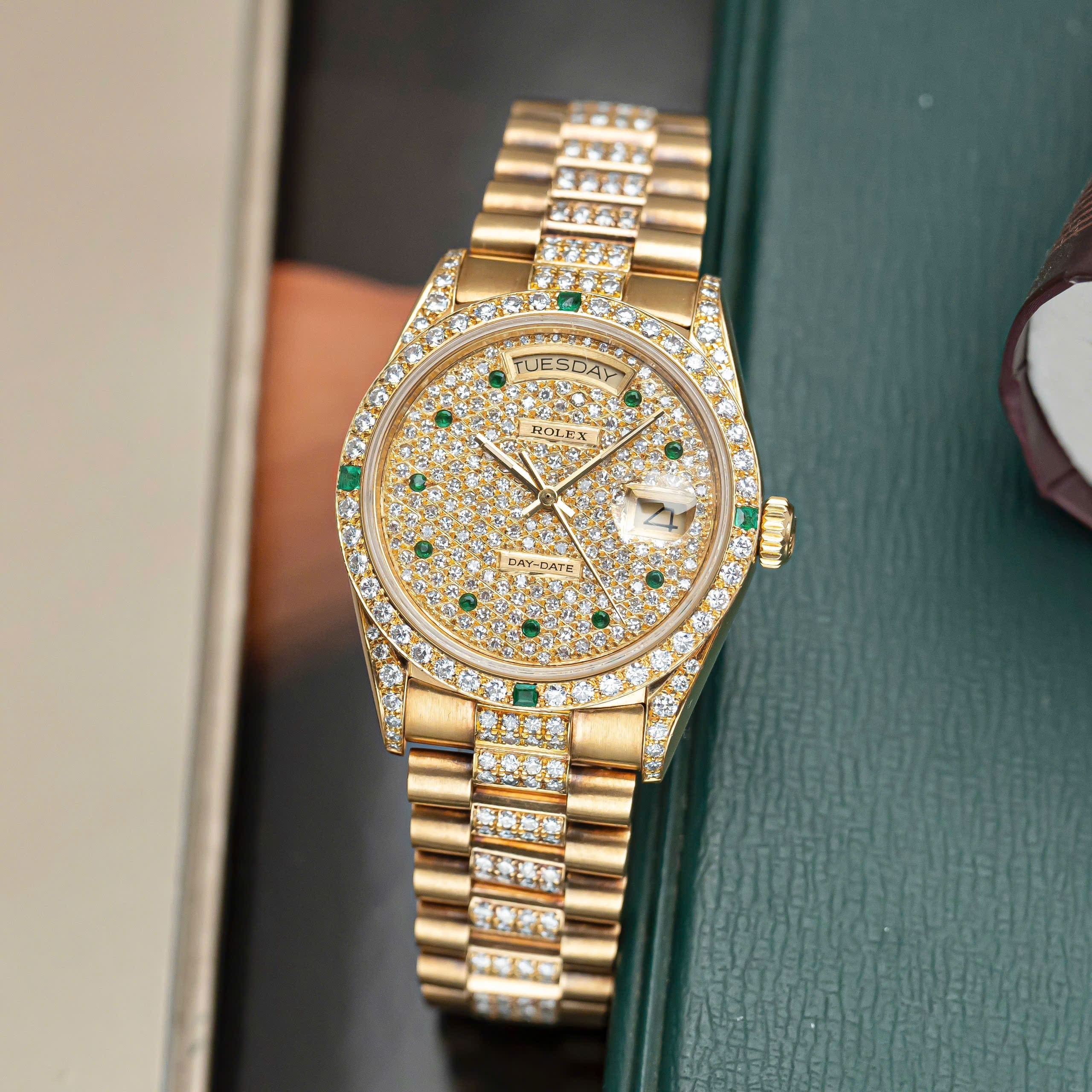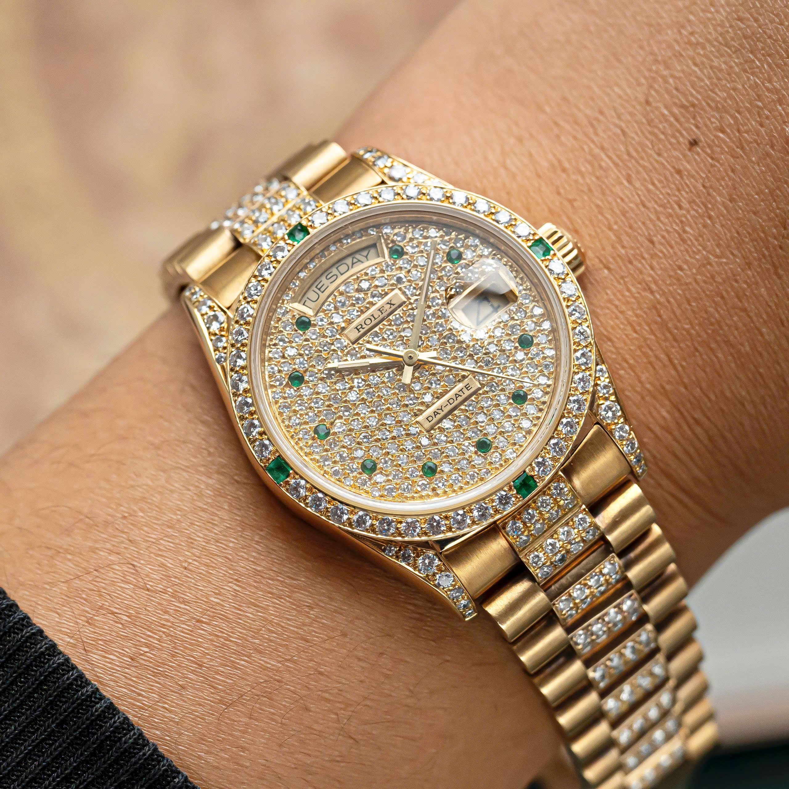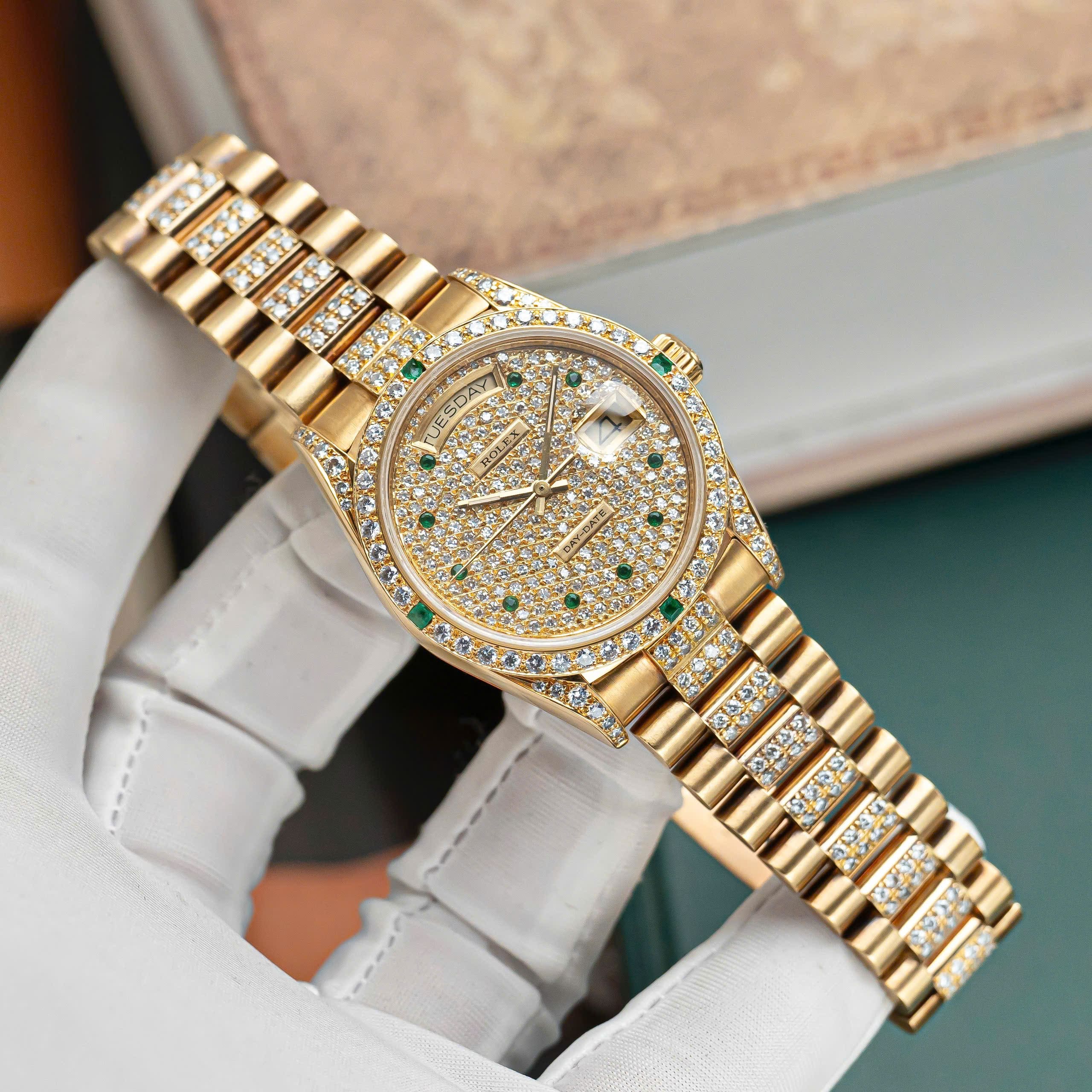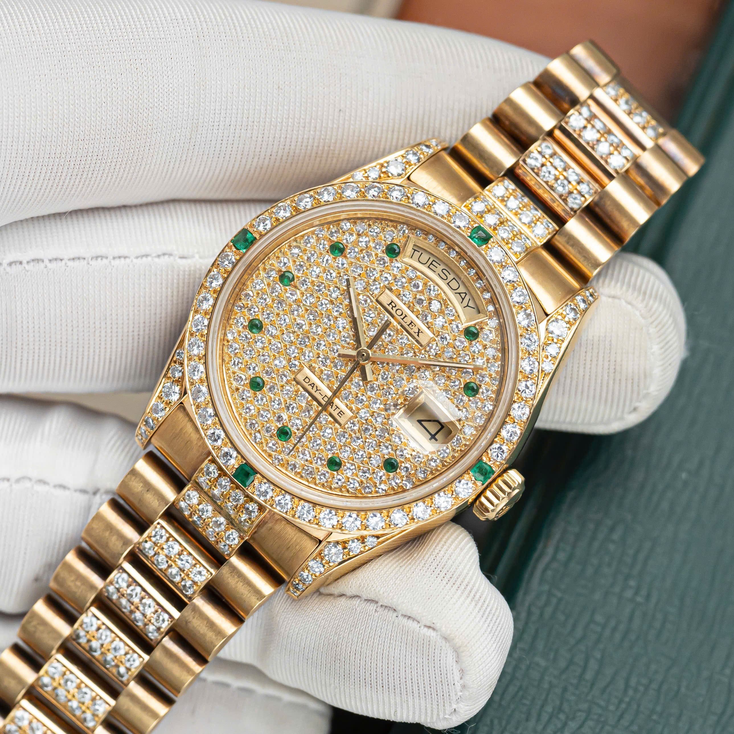Rolex Day-Date 36mm – Ref. 18038 Full Diamond Emerald Markers