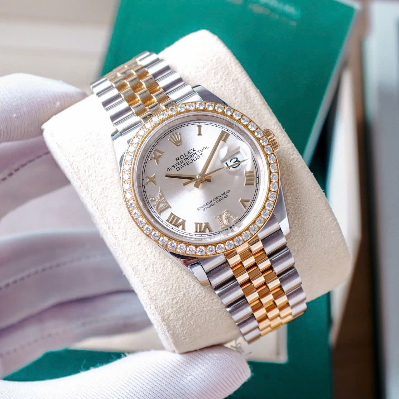 Mặt số bạc ánh sunburst kết hợp cọc số La Mã tạo nên diện mạo cổ điển, trang nhã và rất đặc trưng của dòng Datejust. Ô lịch ngày tại vị trí 3 giờ cùng ống kính Cyclops giúp tăng tính tiện dụng trong sinh hoạt hàng ngày.