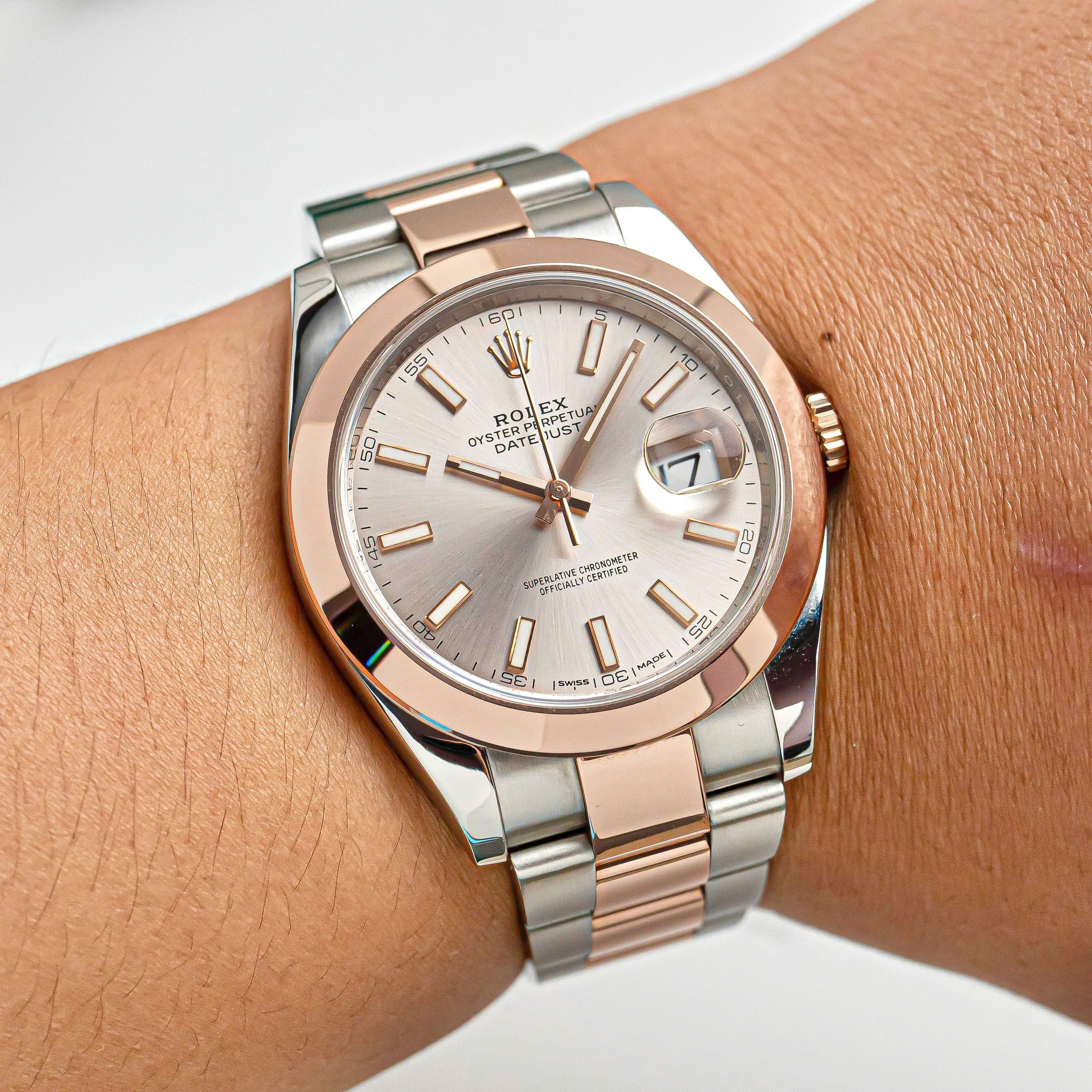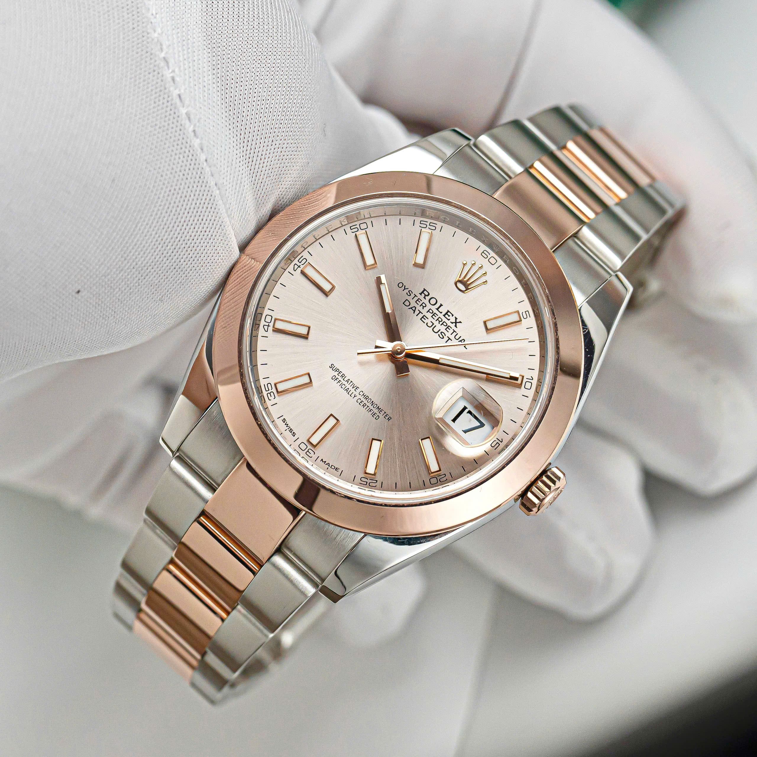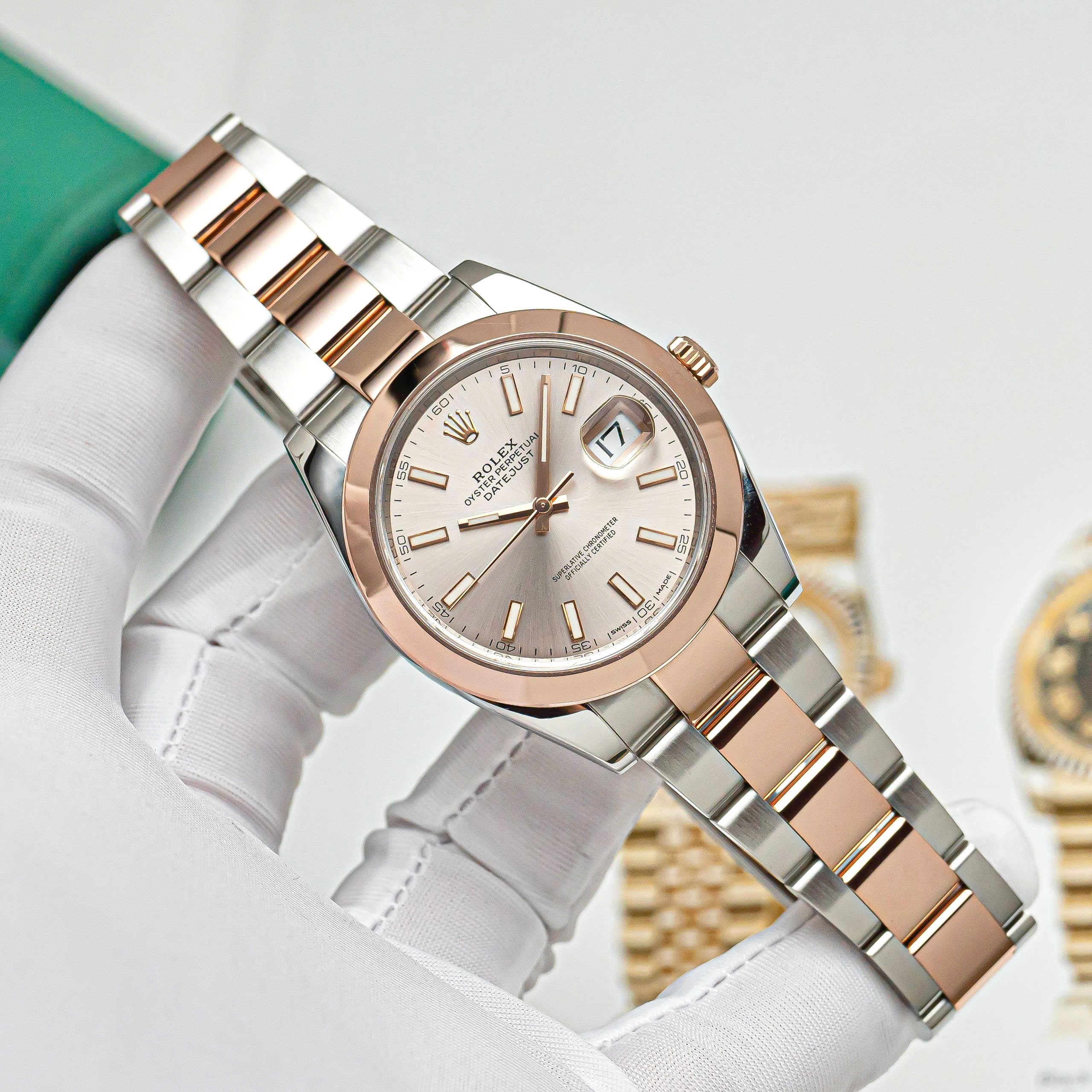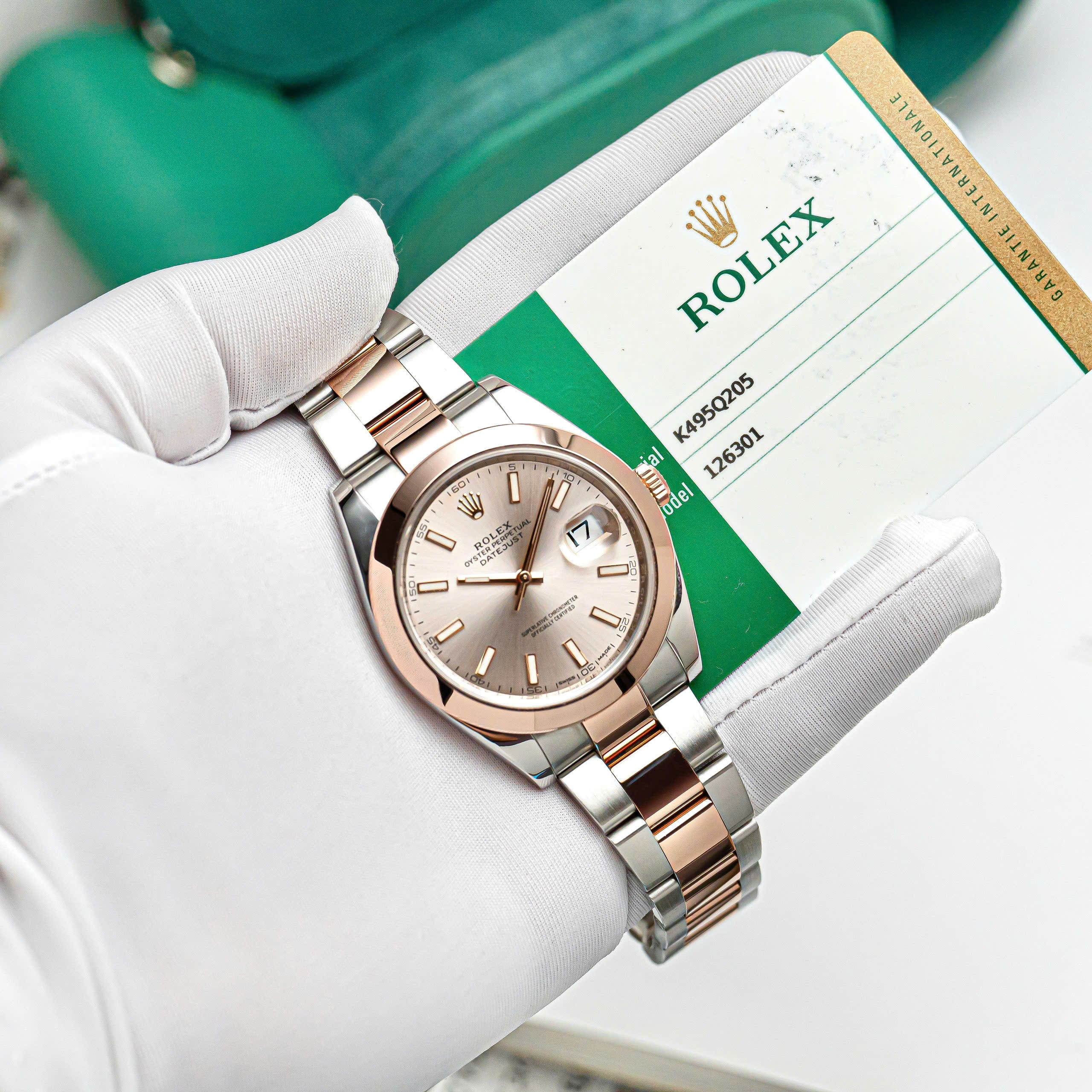 Chiếc Rolex Datejust 41 Ref. 126301 là biểu tượng hoàn hảo của sự tinh tế và đẳng cấp đương đại. Thiết kế chế tác từ chất liệu Rolesor Everose – sự kết hợp hài hòa giữa thép Oystersteel bền bỉ và vàng hồng 18K độc quyền của Rolex, mang lại ánh sắc ấm áp, sang trọng mà vẫn giữ nét hiện đại tinh gọn.