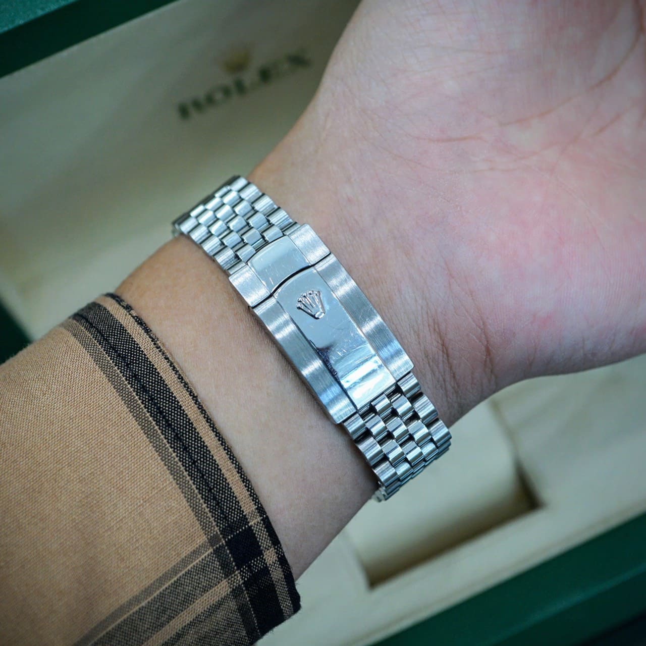 Dây Jubilee thép với 5 mắt nối linh hoạt mang đến cảm giác đeo nhẹ nhàng, thoải mái, đồng thời tôn lên phong thái tinh tế, lịch lãm đặc trưng của dòng Datejust.