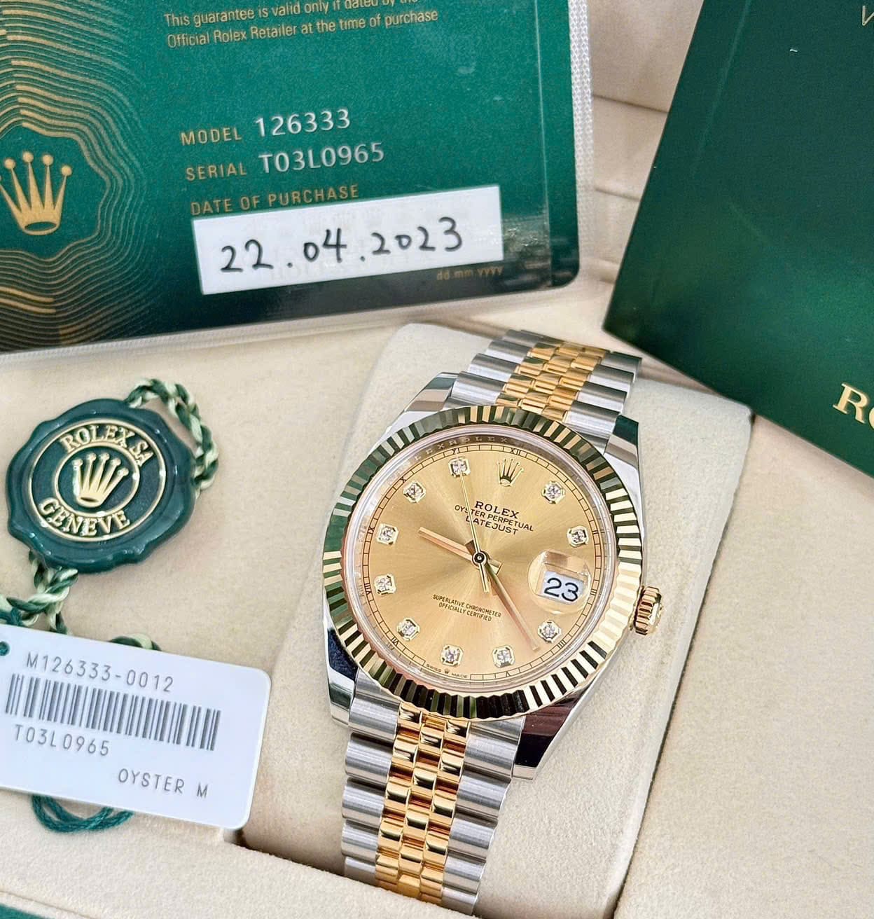 Datejust 126333 Champagne Diamond là cấu hình có tính thanh khoản cao trên thị trường.