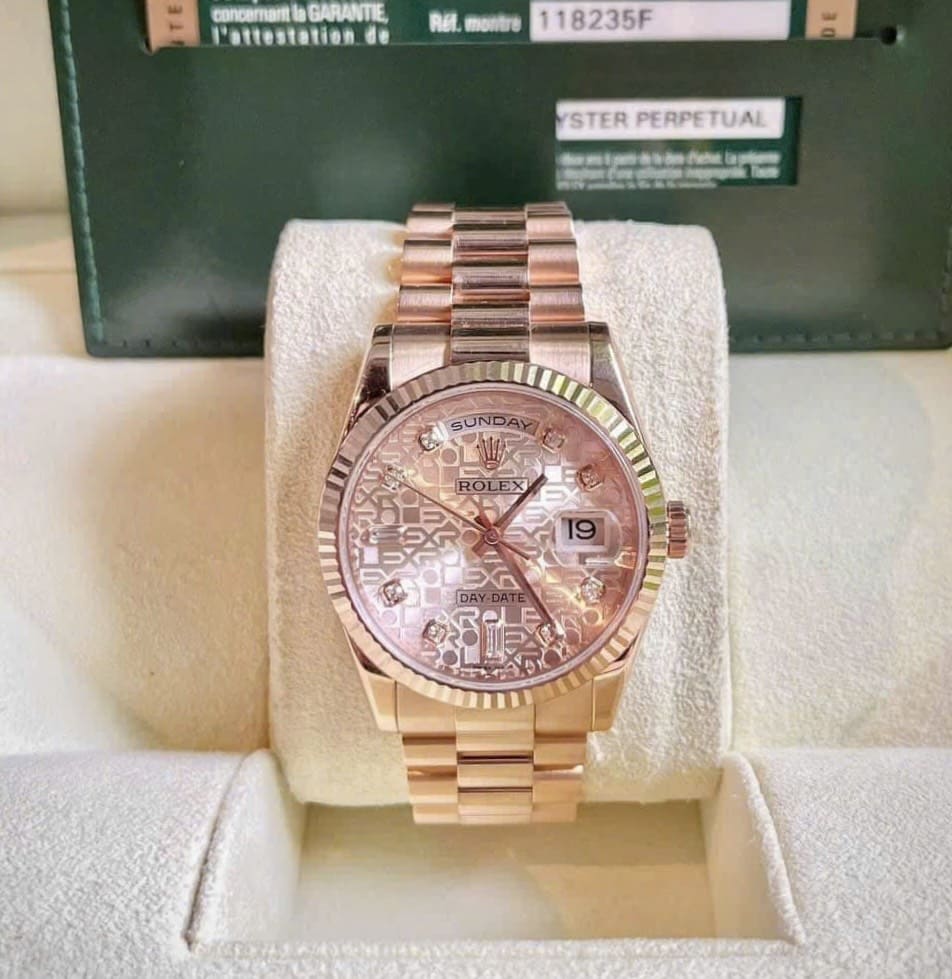 Với thiết kế cân đối, chất liệu quý hiếm và sắc hồng thanh lịch, Day-Date 118235 là biểu tượng của quyền lực được thể hiện bằng sự tinh tế, dành cho người biết trân trọng giá trị của thời gian và đẳng cấp vĩnh cửu.