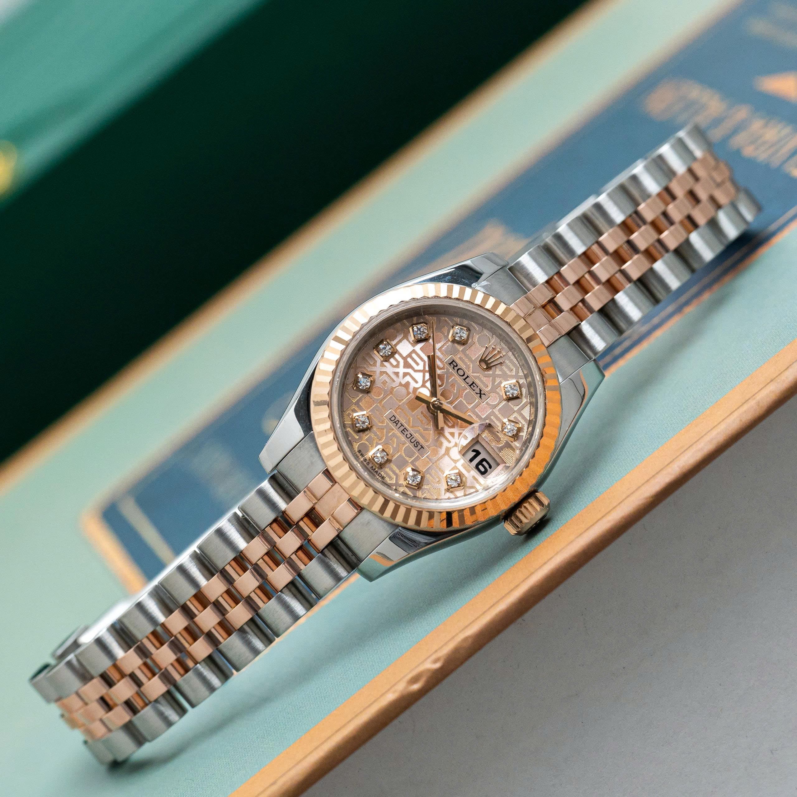 – Ref 179171 là cấu hình demi vàng hồng được ưa chuộng nhất trong thế hệ Datejust 26.