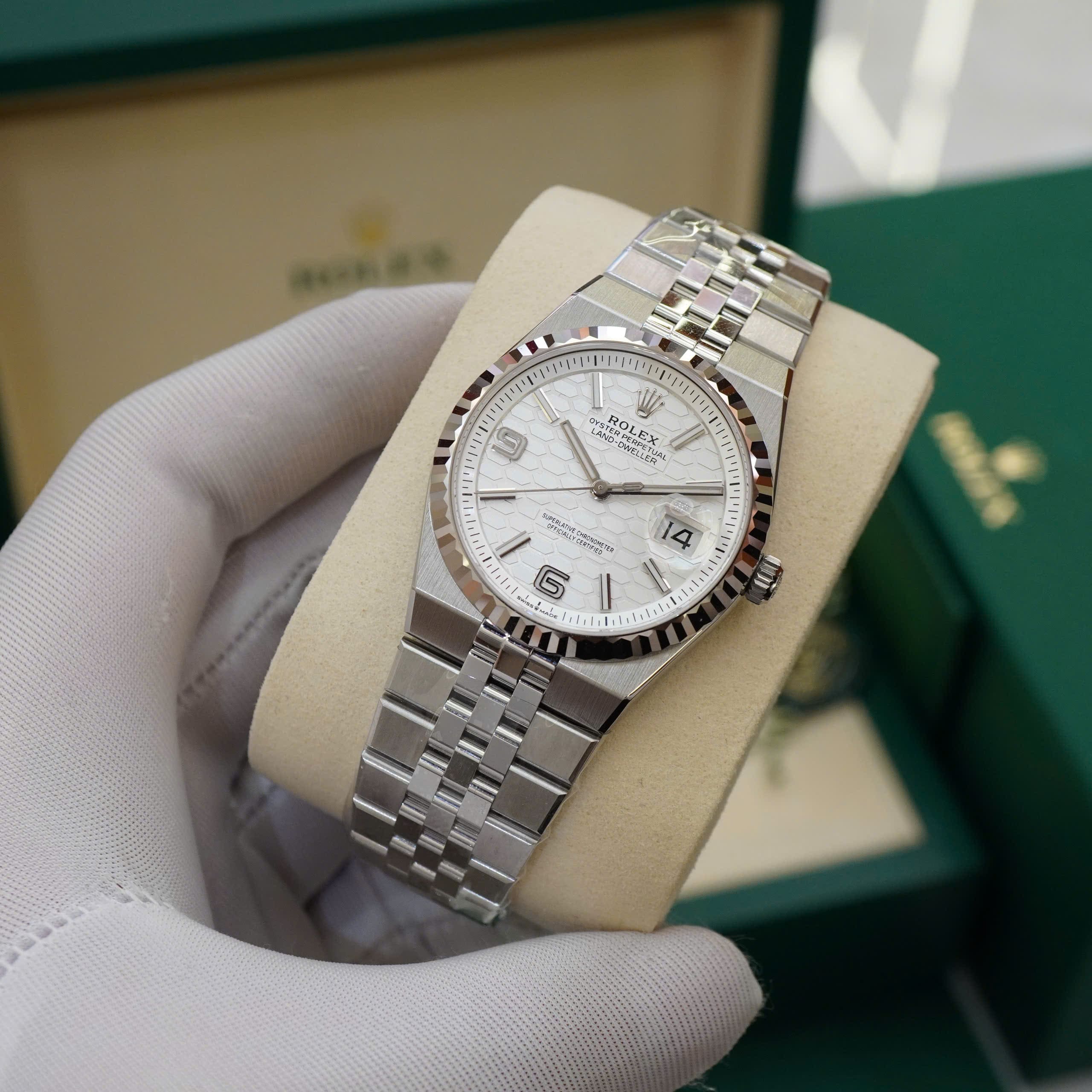 Rolex Oyster Perpetual Land-Dweller 36mm Ref. 127234-0001 – Mặt số trắng họa tiết tổ ong