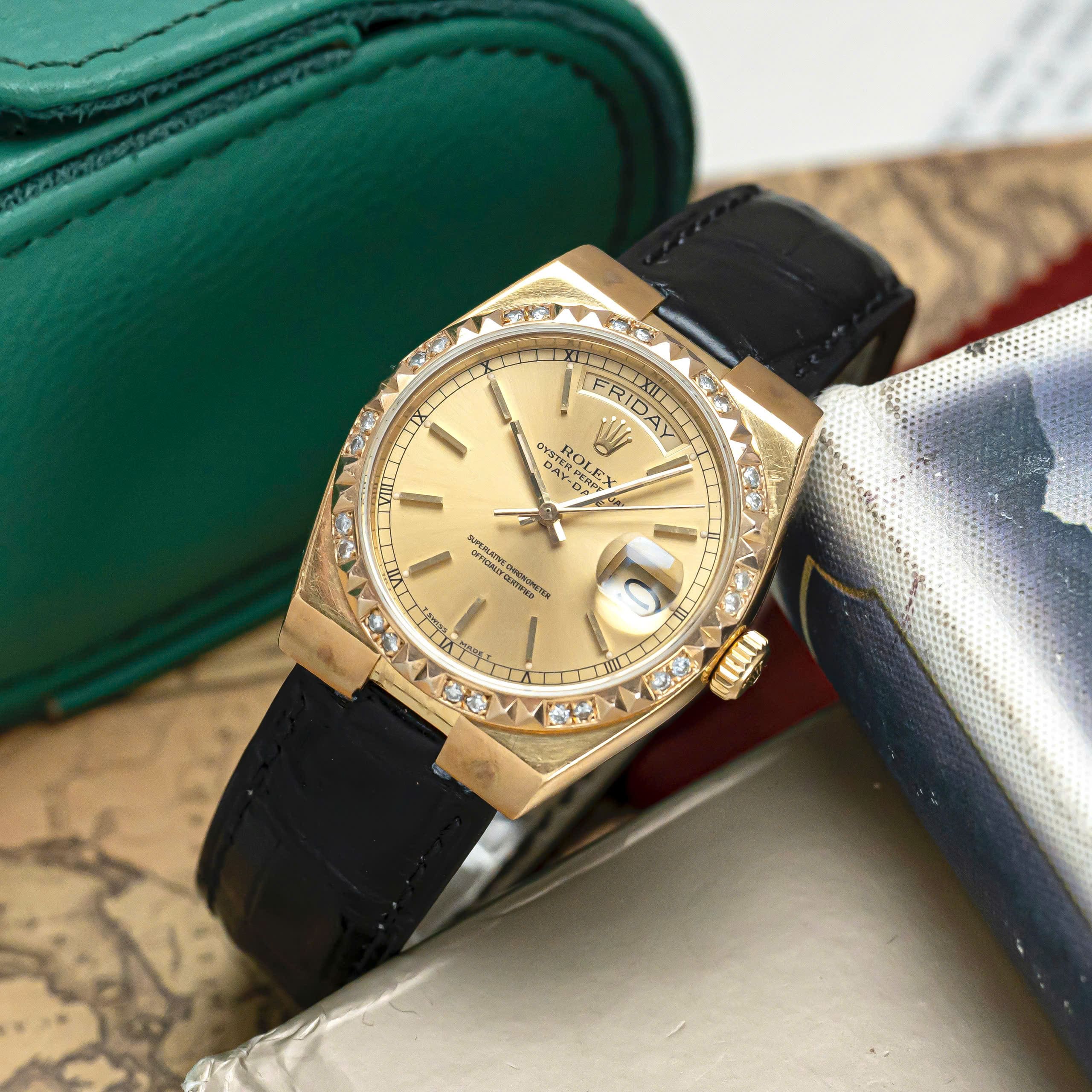 – Thuộc dòng Day-Date Oysterquartz, thiết kế góc cạnh đặc trưng của Rolex giai đoạn quartz.